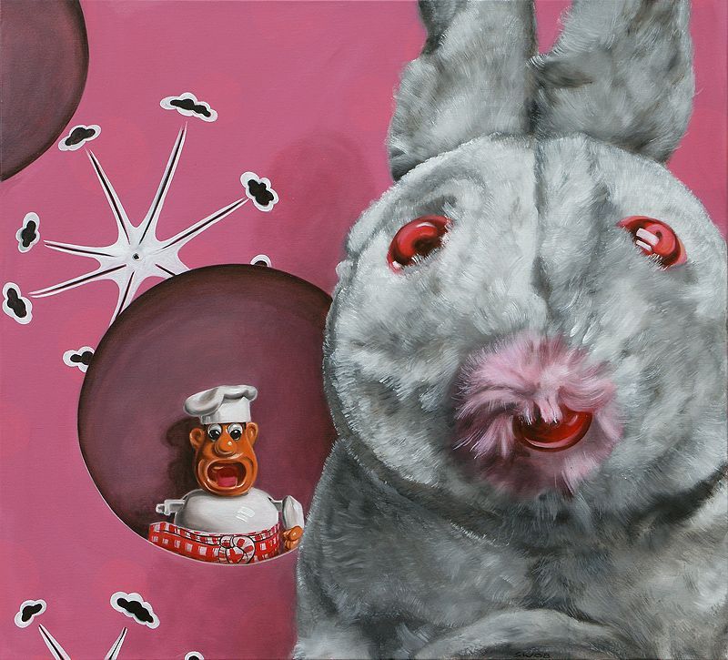 In seinen Bildern treffen leuchtende Farben auf verzerrte Räume, spielerische Inszenierung auf subtile Bedrohung. Die „Tyrannei der Niedlichkeit“ wird entlarvt – ironisch, präzise und eindrucksvoll.Tauchen Sie ein, entdecken Sie seine Werke - zwischen Nostalgie und Subversion. Sebastian Weissenbacher verwandelt harmlose Miniaturfiguren aus Werbung und Spielzeugindustrie in monumentale Kunstwerke.